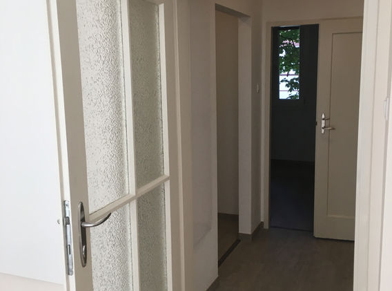 Die Wohnung liegt im 1. Stock eines sanierten Haus mit Lift. Sie besteht aus einem geräumigen Wohnzimmer, Schlafzimmer, Bad mit Wc, Vorraum und Küche.