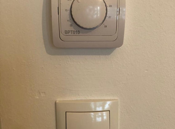 Es wurde eine sparsame Infrarotheizung mit Keramikoberfläche verbaut, jeder Raum verfügt über eine eigene Regelung